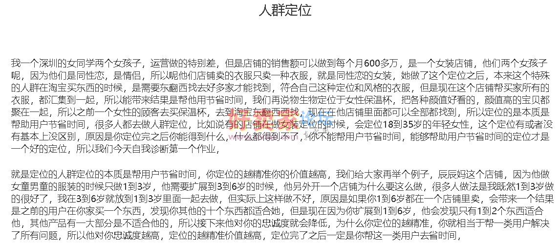 replyreload += ',' + 4299486;【电商百科】运营-人群定位 游客,如果您要查看本帖隐藏内容请 回复后可见